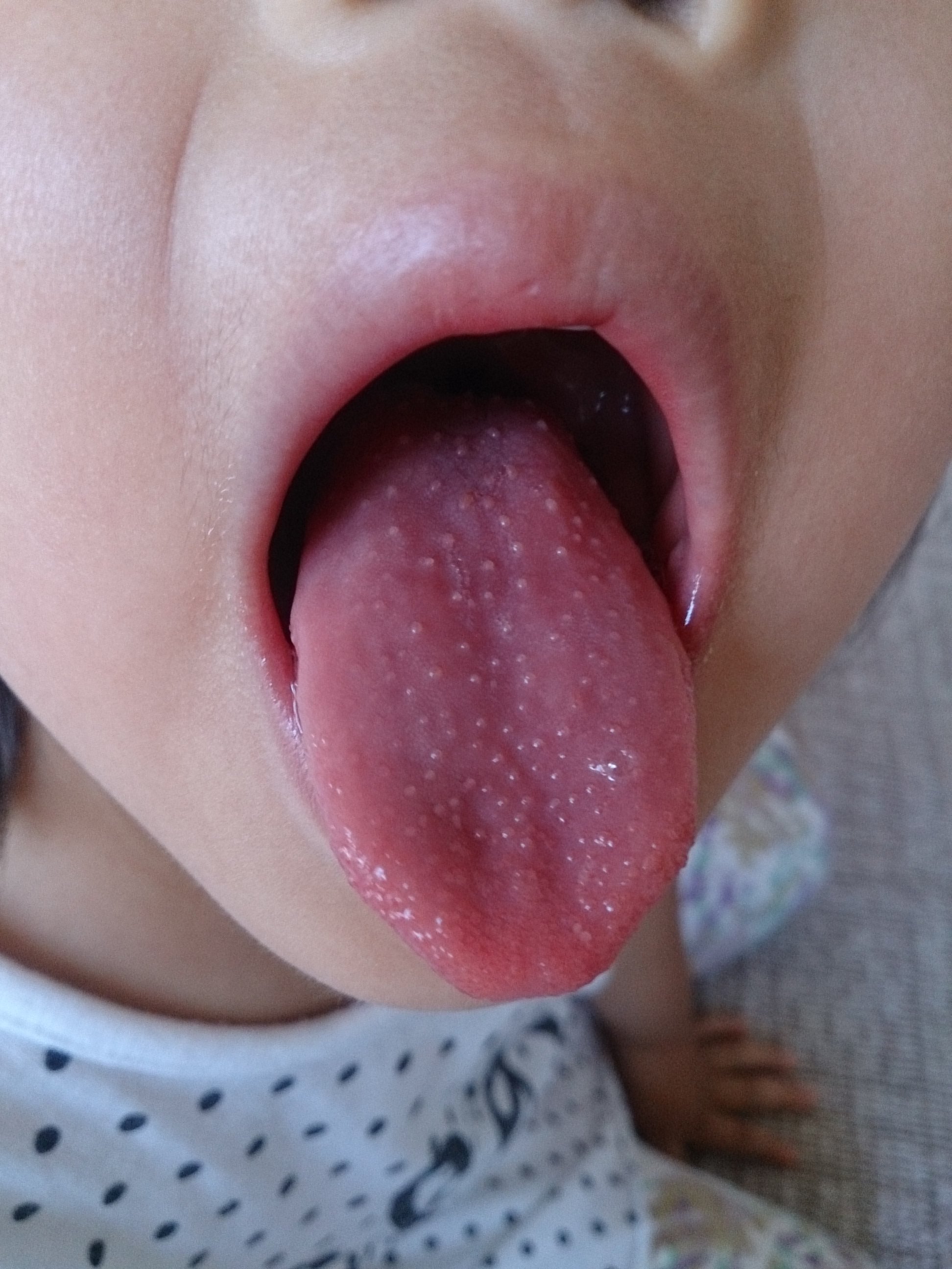 3歳の子供の舌が斑点状のものが、出てます -3歳とちょっとなんですが
